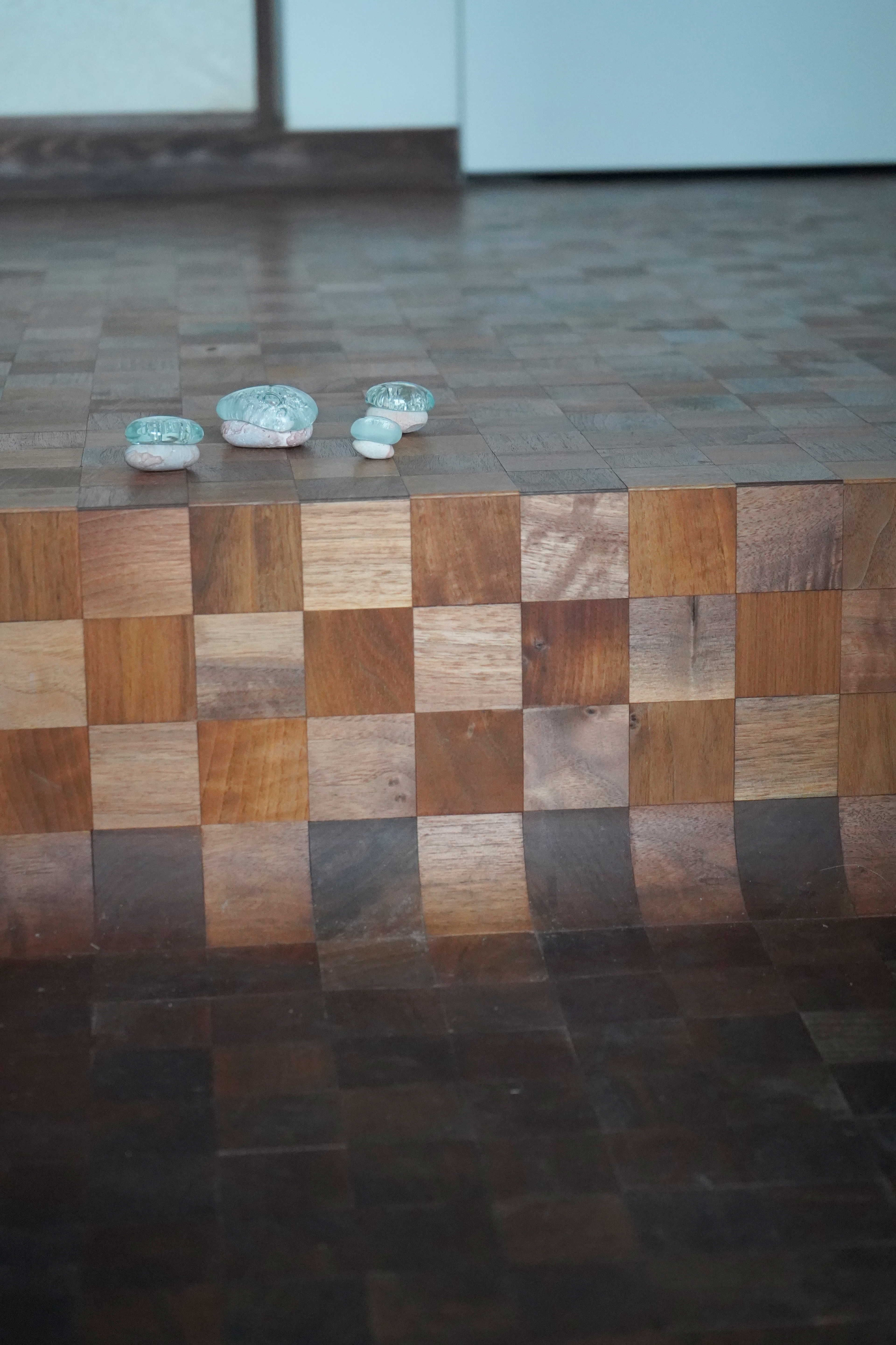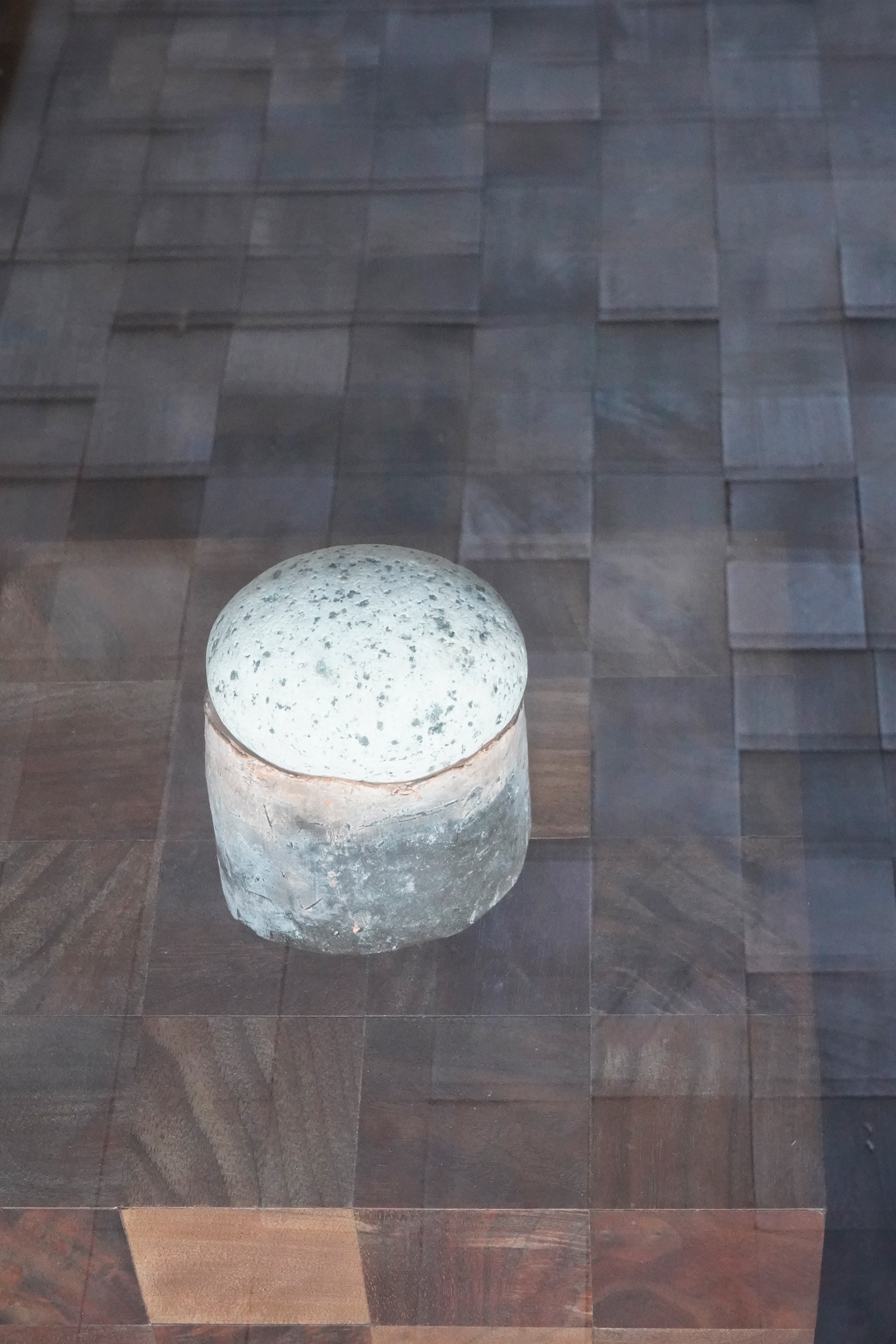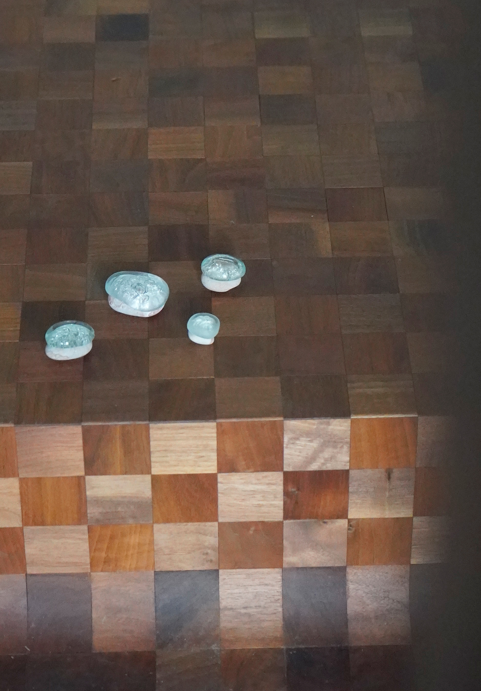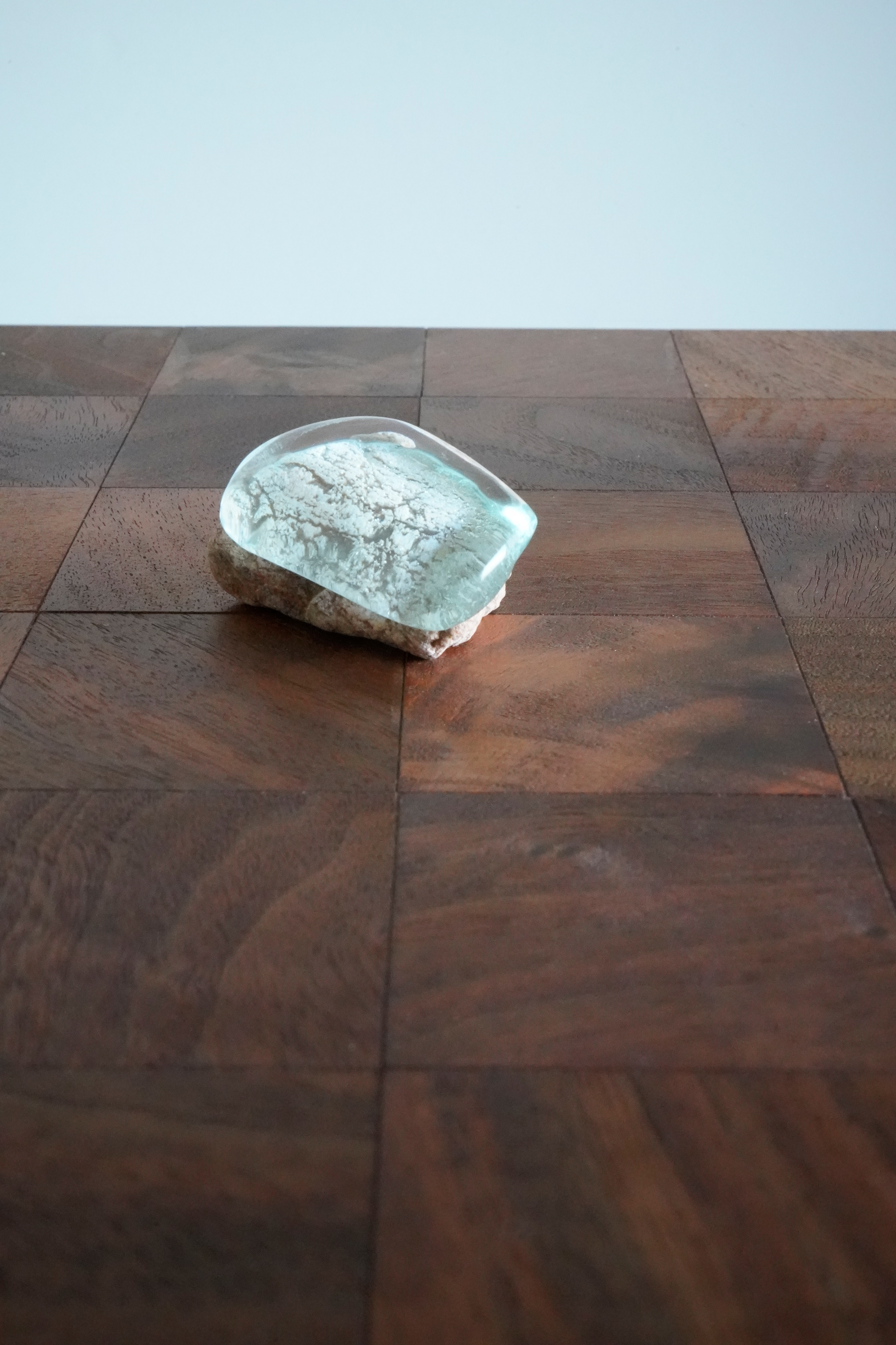 石の底を型取りし、その型に、溶かし流し込まれたガラスが、石を支える。ガラスが石を支えるために、石がガラスに支えられるために、それぞれがどのような運命で生まれたのかはわからないが、異なる2つの物質は1つの風景を生んだ。